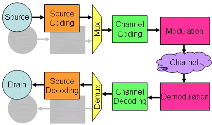 directly from the source to the drain. A principle and general block diagram about signal transmission is drawn on the right side. Several reasons why the information source cannot be directly connected with the drain may be